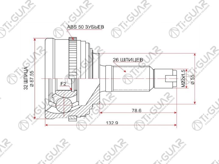 ШРУС наружный /TI-GUAR для HONDA CIVIC FERIO EG9 2000 , DOMANI 1992-, PRELUDE -1989, INTEGRA -1993 /ABS /32*55*26; TG-4421Z50; 0310021A50 310016A 44010SR3J03 44010SR7953 HO021A50