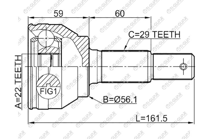 ШРУС наружный /правый /TI-GUAR для Nissan Juke 2010-2019 F15 1.5L HR15DE 2WD; 22*56.3*29; TG-7494; (NI-094) 392111KA5B 391001KA5B 391011KA0B